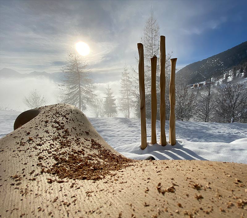 Jedes Stück Holz stammt aus den Wäldern des Berner Oberlandes, einer Gegend von natürlicher Pracht und inspirierender Atmosphäre.